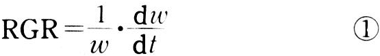 单位时间内、单位干物质增长的速率。今设某作物t0时的干重为w0,经过dt时间以后,增重为dw (见图),则RGR可用下式表达: