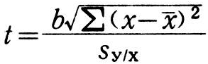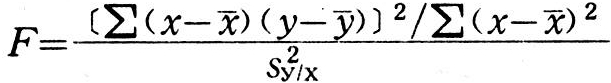 该t值具自由度(n-2)。只有在所得F>F0.05或|t|>t0.05时,才能否定H0,推断y和x是有显著线性关系。