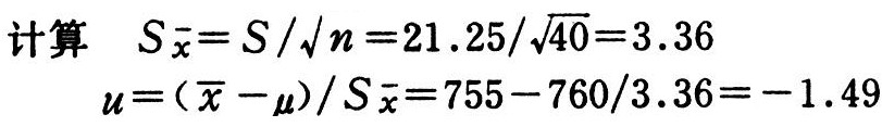 以单个平均数假设测验为例:设某面粉厂购进一批据称容重为760克/升的小麦。该厂抽验40个样本单位,平均容重为755克/升,标准差为21.25克/升。试问这批小麦的容重是否真为760克/升。因n=40,为一大样本,其平均数的抽样分布常遵循u分布,故可:假设
