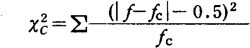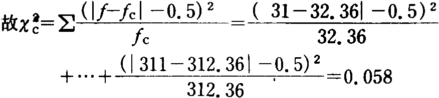 式中f、fC分别为某一属性的观测次数和理论次数用上式算出的X2值只是近似于连续性的分布。所以将算出的X2值与表列