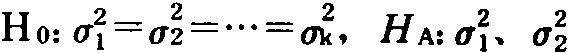 的加权平均数或合并方差。方差同质性测验的假设为