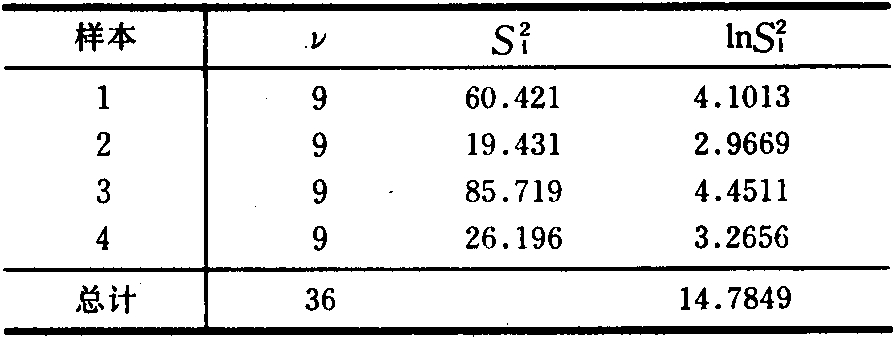 ,k-1,便在α显著水平上否定H0,而推断各方差不同质。例如,四个样本的方差如下: