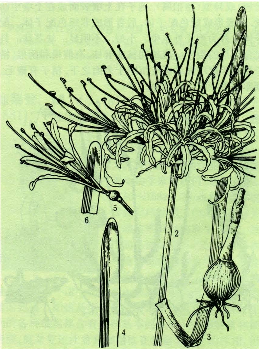 石蒜和玫瑰石蒜(1~3.石蒜;5~6.玫瑰石蒜)