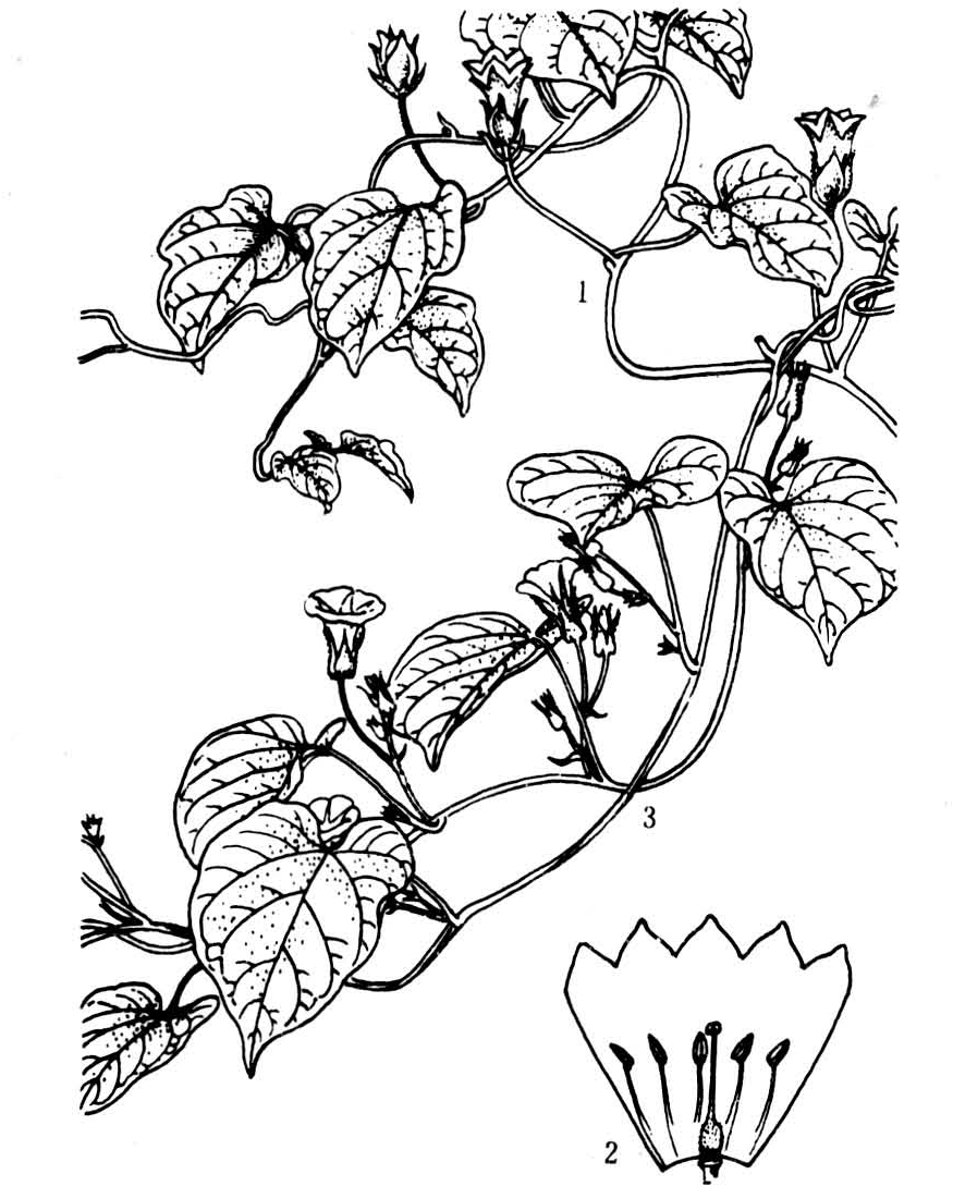 aquatica)。药用有牵牛(Pharbitis nil)和菟丝子(Cus-cuta chinensis)。茑萝(Quarnoclit pennata)和月光花(Calonyction aculeatum)供现赏。常见杂草有五爪金龙(Ipomoea cairica)和菟丝子,危害农作物或其他植物。