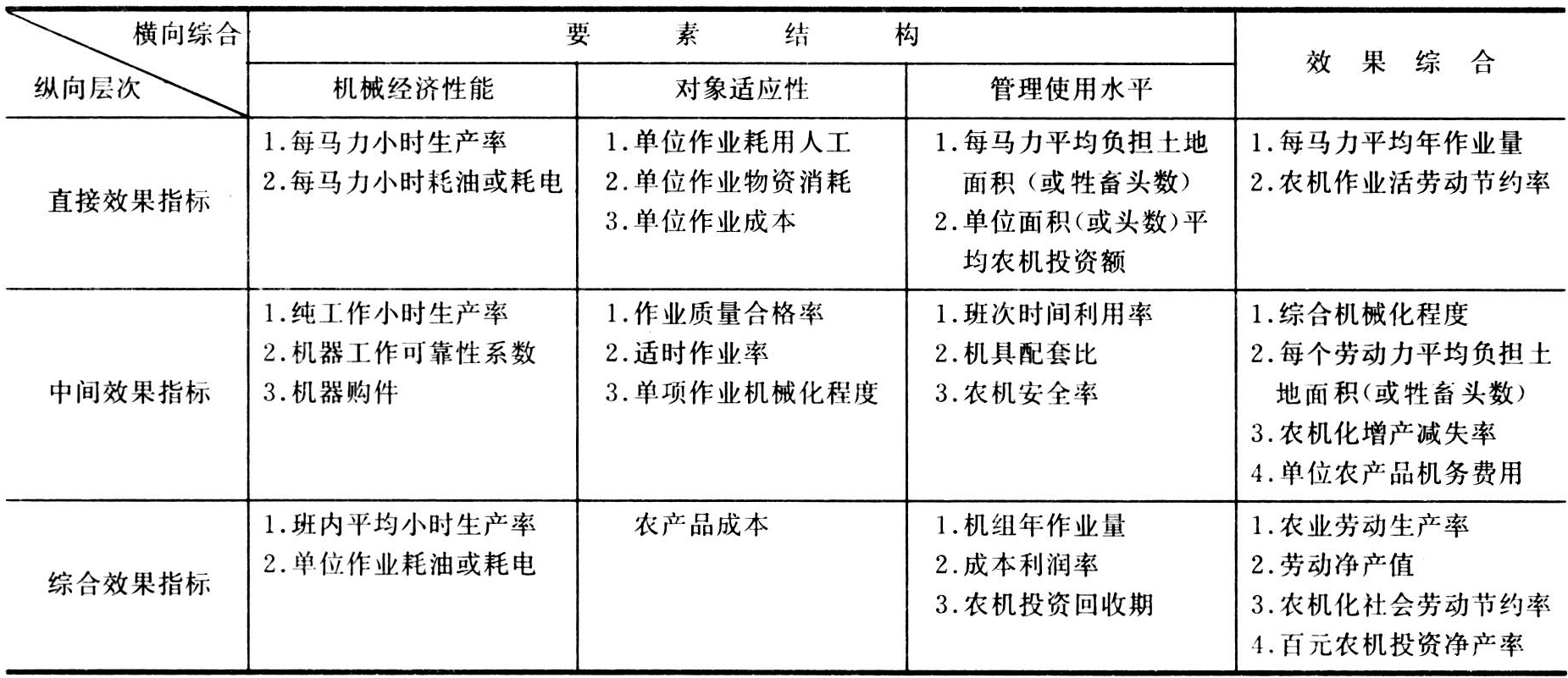农业机械化技术经济总体效果指标体系