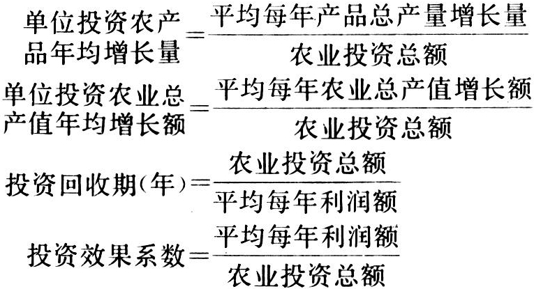 静态分析评价所采用的指标及其计算方法:①农业投资直接经济效果的评价指标。
