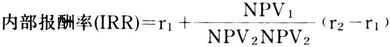 式中 r1为较低的贴现率;r2为较高的贴现率;NPV1为较低贴现率的净现值(正数);NPV2为较高贴现率的净现值(负数,计算时NPV2取绝对值)。