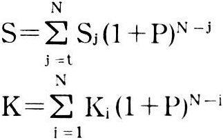 式中 S为累计折算有用效果(如利润)未来值;K为累计折算投资未来值;P为年利率;t为开始获利年度;N为投资有效年限。
