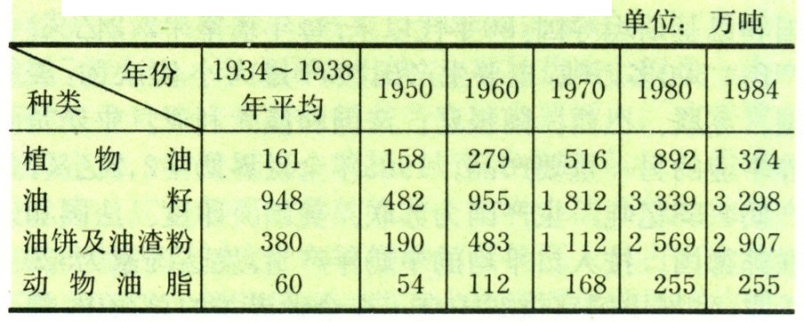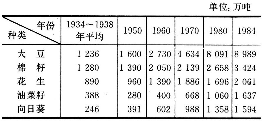 表2 1934~1984年世界主要油料作物生产发展状况