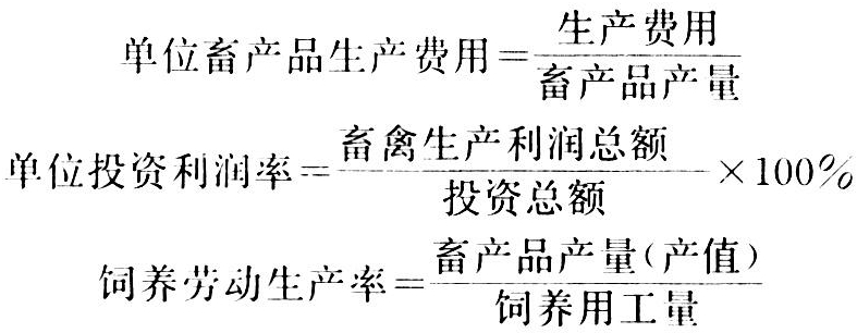 要全面考察投入产出的经济效果,可采用单位畜产品生产费用、投资利润率、饲养劳动生产率指标: