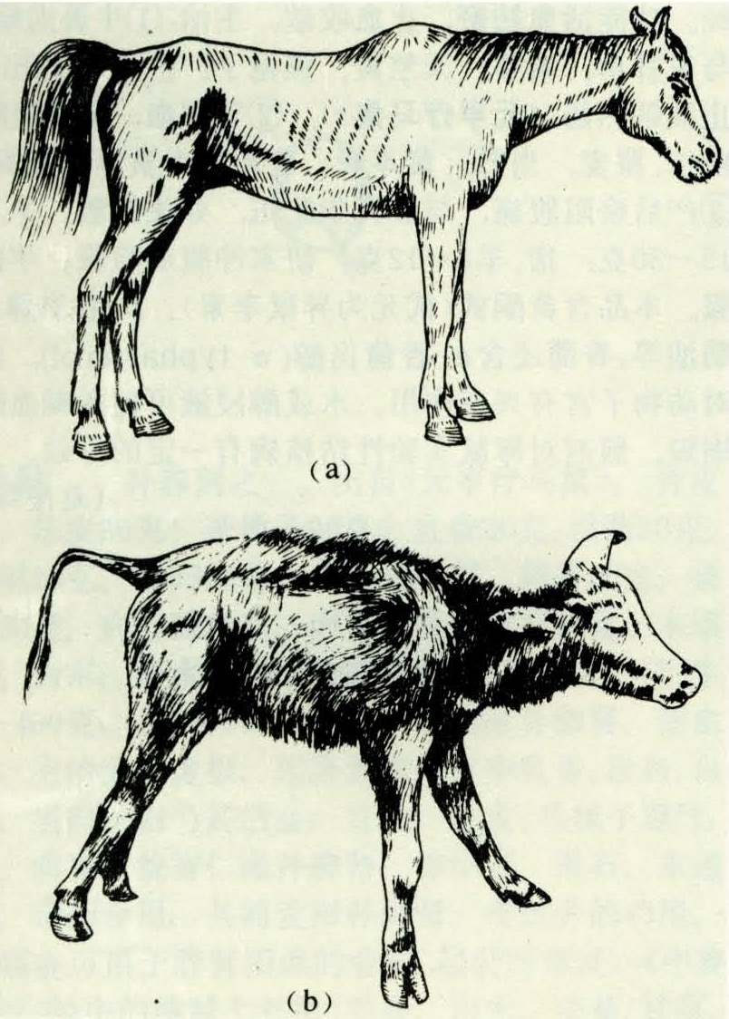 本病的潜伏期,短者伤后24小时即可发病,长者可达数月,一般为7~14天。由于病邪侵入的部位不同,临证表现也有差异。初期邪在腠理,表现轻度皮紧肉硬,头颈转动不灵活,运步稍紧张,咀嚼缓慢,牙关略紧,眼神紧张,若猛令患畜抬头时,则见瞬膜外露。口色偏红,脉浮而有力;中期邪已内犯,闭塞经脉,筋脉失养,则见浑身拘急,四肢僵硬,口禁涎生,耳紧尾揭,口色深红,脉弦数有力;病至后期邪毒已传遍经络,津液大伤,引动肝风,则见牙关紧闭,水草难进,头颈伸直,尾根高举,腰部下陷,行走困难,状如木马(图)。牛和羊常发生瘤胃臌胀。猪则满嘴白沫,叫声尖细。病情继续发展,导致全身衰竭,卧地难起,口色青紫,脉细数无力或出现结代脉象。最后多因过度衰竭,呼吸困难,窒息而死,或继发唾液涎沫入肺而死。治宜初期祛风解毒,镇惊止痉,并结合扩创烧烙,以清除毒源;中期祛风镇惊,解毒止痉,和血通络,以祛毒邪;后期清热熄风,除痰镇痉,益气养阴,以扶正祛邪。治疗贵在早期用药配合精心护理。凡马患破伤风,口松涎少者可治;口紧涎多者难医:脊腰僵硬者,亦难治。选用千金散、五虎追风散、祛风镇痉汤或乌蛇全虫散(《全国中兽医经验选编》:乌蛇、全虫、蝉蜕、金银花、白菊花、防风、酒当归、南星、川羌活、酒大黄、栀子、生黄芪、桂枝、地龙、荆芥、甘草、麻根、黄酒250克为引)加减。伤在头部,加白芷、薄荷;口涎多者,去黄芪、麻根,加白芍药、干姜、姜半夏;腰背强直严重者,加炒僵蚕、酒川断、血竭;四肢强直严重者,加独活、茯苓、红花、木瓜;粪便干燥便秘者,加大黄、芒硝、郁李仁;尿不通畅者,加车前子、茯苓。根据患畜体质和膘情的不同,可用针灸疗法。病初放鹘脉血(放血量马牛为800~1500毫升),并针大风门、风门、伏兔、百会、开关、锁口等穴。鼻内吹入疗风解沫的朱砂散(《元亨疗马集》:朱砂、雄黄、麝香、皂角、芸薹子)。宜将患畜拴系于光线弱的安静而又空气流通的厩舍内,耳内填塞棉花以防过强音的刺激。在患畜肘后和膝前的下腹,各系一结实而柔软的绳索以防倒地。供给充足的清洁饮水,患畜尚能咀嚼者,经常给予少量干硬饲料(如玉米粒)或稻草谷节,以减缓咀嚼肌肉的痉挛。