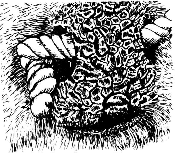 被毛逆立见于外感,被毛焦枯,换毛迟缓,皮肤弹性差,见于脾肺两虚;瘙痒脱毛,擦树揩桩,皮肤增厚,有皱褶和痂皮,多为疥癣;皮肤忽然发生疙瘩,大小不一,连成一片,瘙痒,口眼浮肿,见于遍身黄;前胸等处皮肤有疙瘩和小破口,见于虻蝇叮咬;鞍伤多见于鬐甲或脊背。望皮肤应注意有无疮黄。疮,初起热痛硬肿,继则破溃流脓;黄,急性者属热毒,如束颡黄、偏次黄、腰黄、肷黄等;慢性者属心肾阳虚,如:肚底黄、袖口黄等。