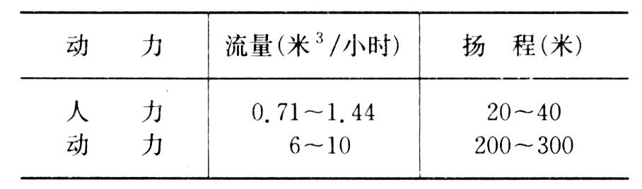 靠长拉杆传动的深井用活塞泵。亦称拉杆泵。活塞和泵缸等工作部件浸没在井下水中,地面上的动力通过长拉杆带动井水中的活塞往复运动来提水。可由人、畜力或动力机驱动。常用于山区牧场供人、畜饮水和生活用水。其扬程可达40米(见表)。
