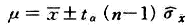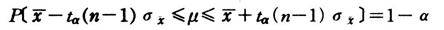 算术平均的表示方法:一是点估计,仅给出统计量x以估计被测参量的真值μ。二是区间估计,在一定的概率P下,估计被测参量的真值可能在内的一个区间,在总体标准差σ未知时遵循t分布。即: