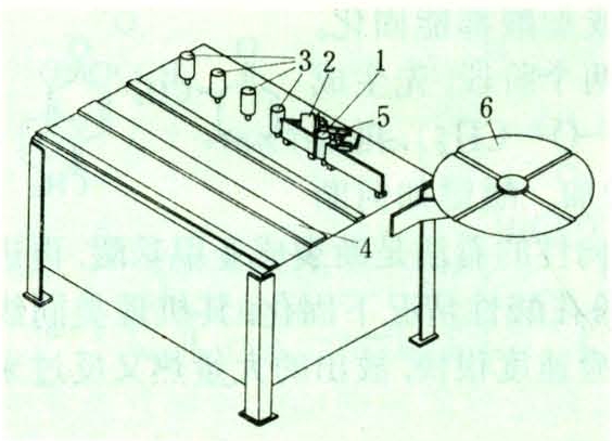 ②手动封边机 在封边过程中操作工人将工件紧靠在压贴辊上向前推进,封边条或封边带在工件与压贴辊之间沿着进给方向被封贴到工件的边缘。这种封边机一般都采用预先涂好胶的封边条或封边带,在封贴过程中只对封边条加热使胶熔融而封贴到工件边缘上。手动封边机一般由封边条加热器、压贴辊、封边条切断装置、工作台面等组成(图1)。在通常情况下,封完边的工件还需在另一台修边齐头机上将封贴在工件上的封边条在宽度和长度上多余的部分修齐。也有的手动封边机增设了修边齐头的动力头,使操作较方便,效率亦高。由于这类设备结构较简单,特别适合封贴尺寸较小的工件之边缘,因此在小型的板式家具工厂中使用较广。