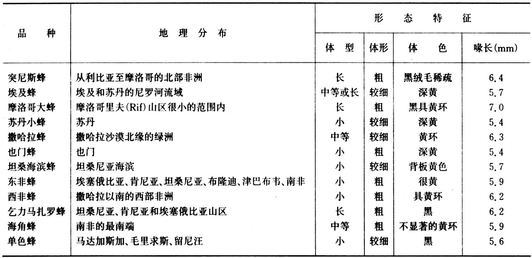 非洲蜜蜂的分布及形态特征