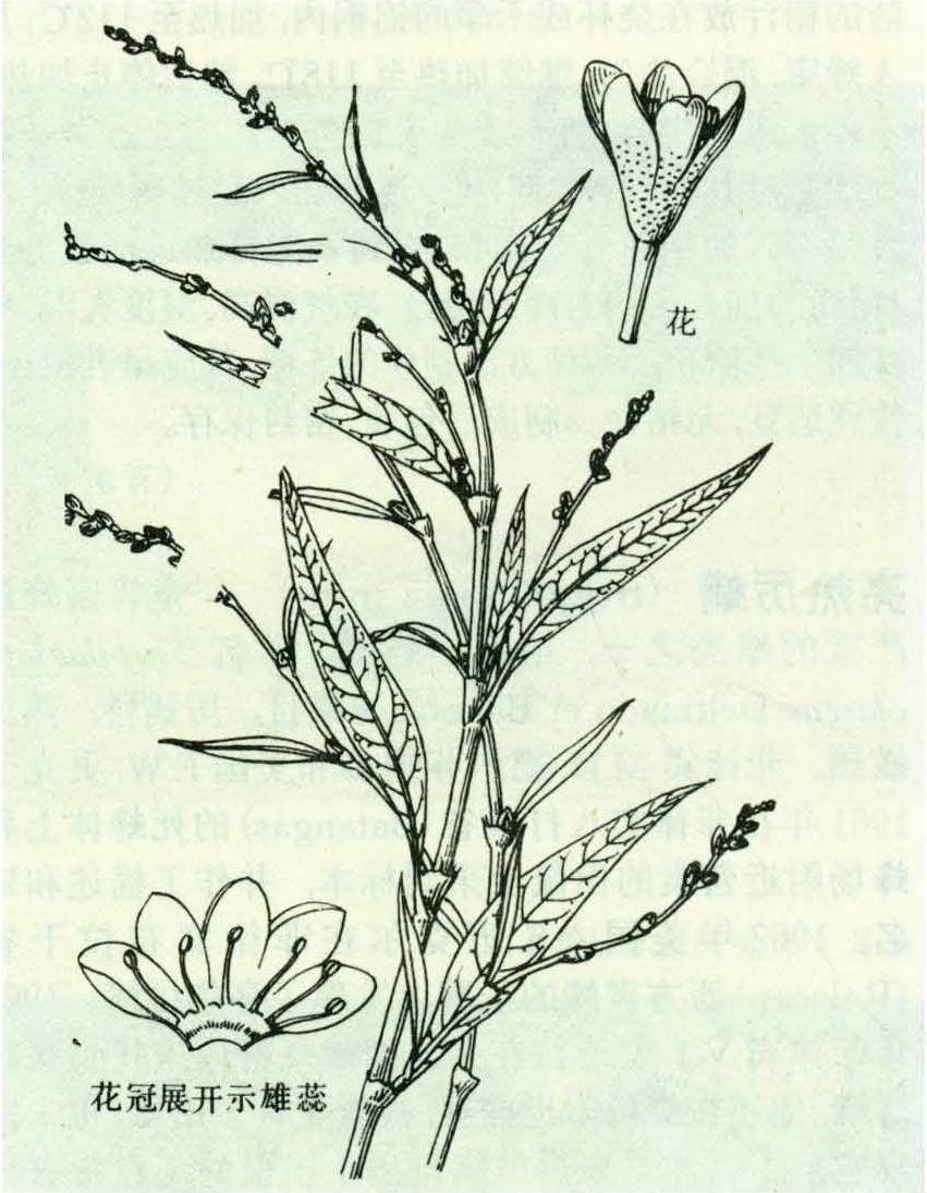 别名辣蓼。水湿地秋季杂草蜜源植物。一年生草本,高40~80厘米,叶披针形,花序穗状,花淡红色。(见图)