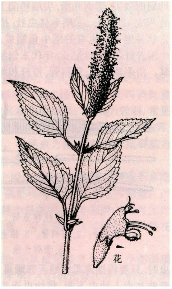 中国南方丘陵山区晚秋重要蜜源植物。学名Elsholtzia cypriani(Pavol.)C.Y.Wu et S.Chow。别名野香苏、野苏麻、野白木香。唇形科。一年生草本植物。茎直立,高40~100厘米,叶片卵形至矩圆形。假穗状花序顶生,圆柱形,花冠淡紫色。蜜腺位于花冠内子房基部,小坚果矩圆状椭圆形。(见图)