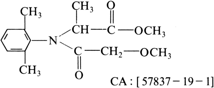 强内吸性取代苯酰胺类杀菌剂。商品又名瑞毒霉(Ridomil)。化学结构式: