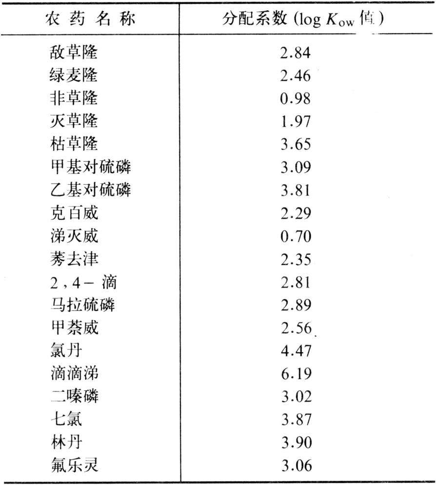 农药在正辛醇/水相体系中的分配系数