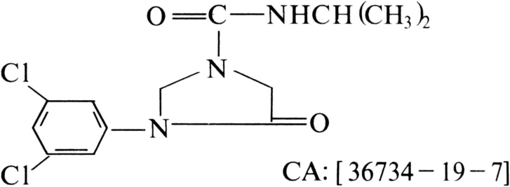 3,5-二氯苯胺系统的杂环杀菌剂。商品名扑海因(Rovral)。化学结构式: