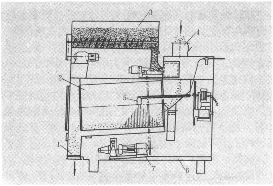 能把农药、肥料粘结在种子表面上使种子获得平滑的、一定形状和大小的丸状种粒的种子处理机。丸粒机主要由种箱、粉箱、液泵、撒粉器、雾化器、滚筒、传动机等组成(图3)。定量的种子送入滚筒后先经雾状药液湿润表面,一面滚动一面与来自输粉器的粉剂混合,在种子表面形成均匀的粘敷层。在滚筒末端,雾状保护剂喷洒在粘敷层外表面,形成均匀的保护膜,然后由出料口排出或送入干燥器烘干。种子的丸粒化过程,根据不同的目的可以反复地进行,直到获得所需的种子表面形状或大小尺寸。