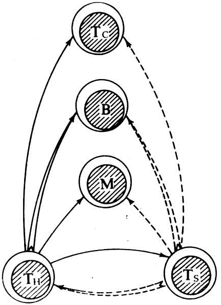 获得抗体,虽可暂时抵抗感染,但常使主动免疫归于失败。抗体还可通过独特型—抗独特型网络对免疫应答进行调节(见网络学说)。细胞在免疫应答的调节中,T细胞处于中心位置。辅助性T细胞(TH)和抑制性T细胞(TS)分别增强和抑制免疫应答(图2)。TH和TS除直接传递抗原信息外,主要通过释放多种可溶性淋巴因子(LF)和白细胞介素(IL)发挥免疫调节作用。
