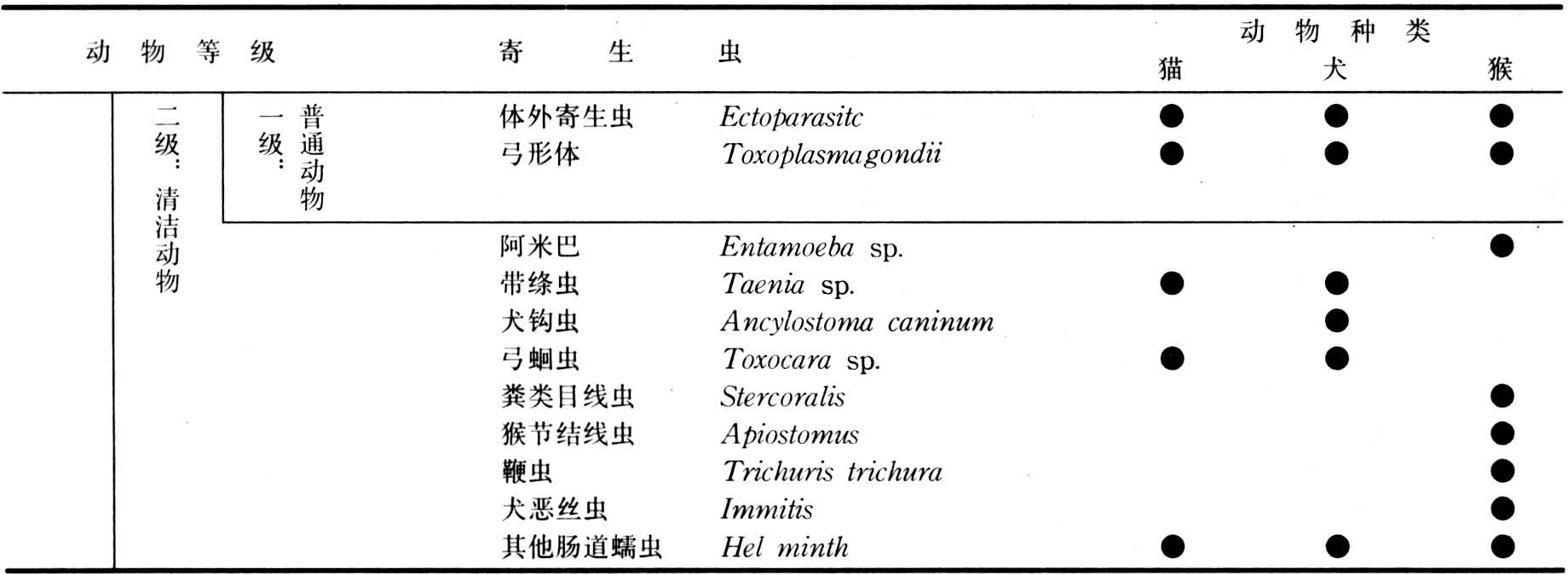 表3-2 实验猫、犬、猴寄生虫监测等级标准