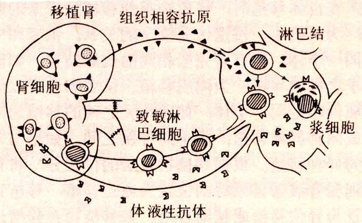 将供者(donor)的组织或器官移植到受者(recipient)体内后,移植物和受者相互作用所产生的免疫应答。同种异体组织或器官的移植在外科手术上并无困难,但由于移植的组织相容性抗原与受者不同,可以为免疫系统所识别而被排斥。
