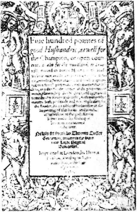 《优良农业指针》书影 英国近代早期农书。作者塔撒(Thomas Tusser,1524~1580)出生于埃塞克斯郡,曾从事农业经营及商业贩运活动。1557年出版《优良农业指针百例》,经增补干1573年改为《优良农业指针五百例》,后曾多次重印,1812年出版了由默沃斯(Mavos)注释的新版。现在通行的是经哈特莱(D.Hartley)编辑于1931年在伦敦刊印的本子。