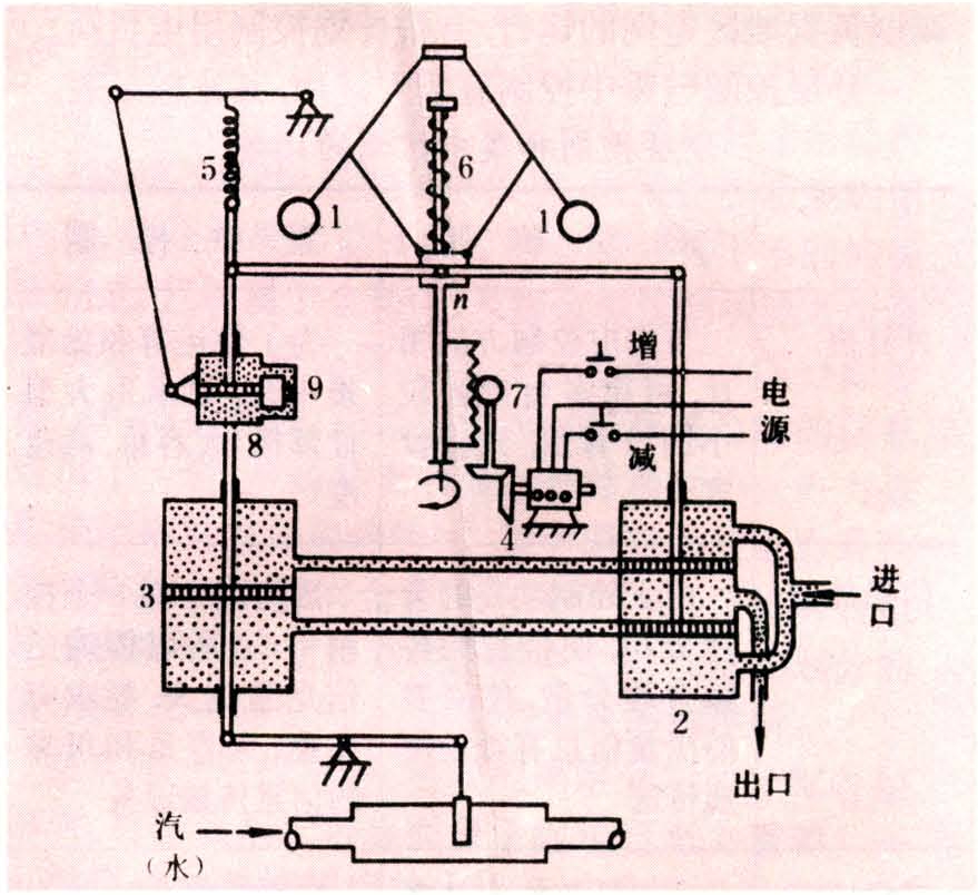 由测量(离心飞摆)、放大(油传动器及错油门)、执行(油传动器及连杆)、调差(油补偿器、连杆系统、弹簧)及变速环节(变速电动机)组成(图1)。