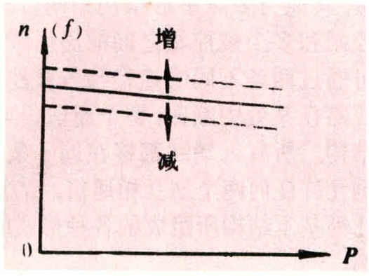 调速器的调节特性是一条直线(图2),其倾斜度即为调差系数。一般不宜太大,对于汽轮发电机为4%~6%,对于水轮发电机组为2%~4%。电力系统中如有多台机组调差系数为零,是不能并列运行的。所以系统中所有机组调节器都是有差调节,由它们共同承担负荷的波动。实际上调速器具有一定的失灵区,所以调节特性为一条区带,因此导致并列运行发电机组间有功功率分配产生误差,最大误差功率与调差系数成反比,调差系数过小将引起较大的功率分配误差。但失灵区又不能太小或没有,如太小,会使阀门调节过分频繁,这是无益的。对于汽轮发电机调速器失灵区为0.1%~0.5%,对于水轮发电机失灵区为0.1%~0.7%。自动调频时,调速器的变速环节—调速电动机的正反转,由调频器和有功功率调节器控制。