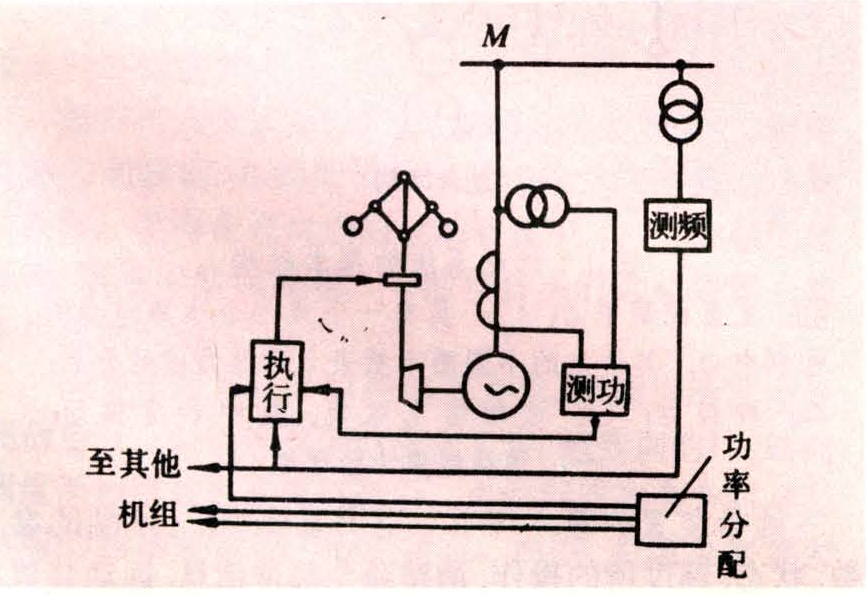 利用自动调节手段(主要环节是调速器和调频器),改变原动机单位时间内动力元素的进入量,从而调节系统的频率。当发电机负荷的有功功率(包括网络功率损失)与原动机的出力保持平衡,机组的转速保持额定,频率为一定值;当负荷有功功率增大时,若原动机出力未变,功率平衡被破坏,机组转速下降,频率相应下降;相反,当负荷有功功率减小时,则转速上升,频率升高。利用原动机所附装的调速器,反应汽轮机或水轮机转速变化;或者利用调频器,反应系统的频率,相应地调节阀门(汽门或水阀)开度,控制进汽量或进水量,改变机组出力,使机组转速维持在一定范围。二者都是通过改变原动机动力元素(单位时间内)的进入量,来实现频率调节。但调速器由于性质的限制,不可能在系统负荷变动时,满意地将频率维持在额定值,另一方面,由于系统内负荷的有功功率,是整个系统内所有电厂的发电机共同负担的,所以,为了实现系统的经济运行,负荷的有功功率应按经济原则在各电厂及机组间进行分配,而调速器是不可能实现这一任务的。因此,系统内有功负荷变动引起频率变化时,除由调速器进行频率调节外,还须有调频器对频率进行调节。这样即提高了系统的频率质量;并按经济原则在电厂和机组间分配有功负荷。这就是频率和有功功率调节的基本任务。