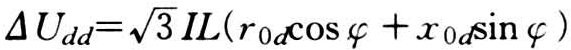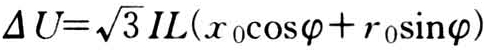 式中 I为线路的最大工作电流(安);L为线路长度(千米);φ为功率因数角;r0d=1/3(r0+2rd)(欧/千米)为地相单位电阻,r0为架空导线的单位电阻,rd=0.05欧/千米为大地的单位电阻(与土壤电阻率无关);x0d=1/3(xe+xr-xd)(欧/千米)为地相单位电抗,xe=0.1445lg(92.24)为与地中电流等值深度有关的大地单位电抗,92.24