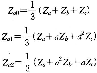 阻抗Za、Zb和Zc三个复数量的对称分量为: