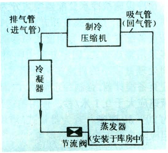 的结构形式由经验估计确定,有关资料建议单位库容积的通风量为6~30米3/时。在建筑结构上,主要考虑防水防潮措施,可以采用“疏水层”排泄地下水。 机械制冷原理 制冷系统库体只是对果蔬产品贮藏提供了一个隔热场所,在大多数情况下还需外界提供冷源