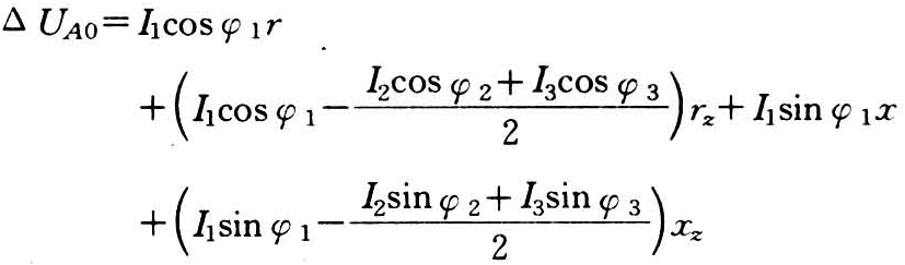 △UAB=〔2I1cosφ1+0.5(I2cosφ2+I3cosφ3)〕r+〔2I1sinφ1+0.5(I2sinφ2+I3sinφ3〕x