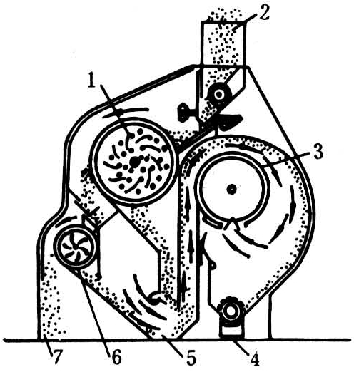 除去大麦或牧草种子的芒和绒毛,增加分离效果,另外对未脱净的断穗起补充脱粒作用。大麦除芒器由带有除芒叶片的转子和圆筒外壳(与转子保持一定间隙)组成。种子在转子和外壳之间受到挤压和搓擦,芒被除掉。为了减少种子在除芒处理时的损伤,应先将种子干燥,使含水率降到12%左右再除芒。另外,在满足工作要求的情况下,将除芒器的转速尽可能调至最低。