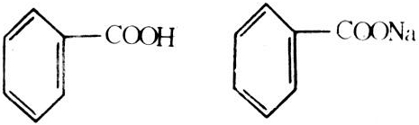 苯甲酸及其钠盐 又称安息香酸和安息香酸钠。分子结构式分别为: