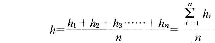 式中 h为平均挖土深度(米);h1,h2,h3,……,hn为各测点挖土深度(米);n为测点总数。