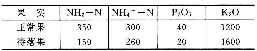枣树多栽培在山地或滩涂沙荒地上,是极耐干旱、耐盐碱和耐土壤瘠薄的树种。枣树具有强的适应性,与其根系的水平骨干根(行根)显著强化、分布深远(常是树冠径的3~6倍以上)有关。枣树根系密度较小,吸收水分和养分由根系分布的深远而弥补其不足。在一年中枣树根系和地上部都活动较晚,根系生长与营养吸收的适温为21℃以上,б同一栽培地区的苹果等其他落叶果树为高。但枣树的根系和地上部分一旦开始生长,则极为迅速,因此各器官之间的养分竞争非常激烈。萌芽到开花期,以氮(N)素营养为主,供前期枝叶、花蕾生长发育之用;氮供应充足时,枣头(枣发育枝)、枣吊(枣结果枝)的生长健壮,花蕾分化质量高。开花期养分不足时,即使花多也坐不住果或坐果极少。在花期用“开甲”(枣树环割技术之特称)调节养分的矛盾,效果显著。主要是抑制花期枣头的强旺生长,减小其对养分的竞争力,有利于花和幼果对养分和生长调节物质的吸收,提高坐果率。幼果期正值枣头生长高峰后期,根系生长高峰前期,果实细胞分裂与增大十分活跃,需要大量的营养元素。此时养分不足,果实生长受到抑制,生理落果严重。即使不落果,果实小而不整齐,产量很低,根系生长减弱,吸收能力下降。枣重要产区,多为枣粮间作,尤其是枣—小麦间作。枣树开花坐果至幼果期正值麦熟季节,间作物对磷(P)、钾(K)肥需求量极大,由于农活的紧张,往往忽略了枣树的需肥情况,造成大量落果。枣树的生理落果主要起因于营养不良,从正常果与生理落果中氮、磷含量差异上可以明显地看出来(表)。果实成熟至落叶前,树体养分进入积累时期,需要大量氮,喷施氮肥可以延迟叶片的衰老,增加树体的贮藏营养。