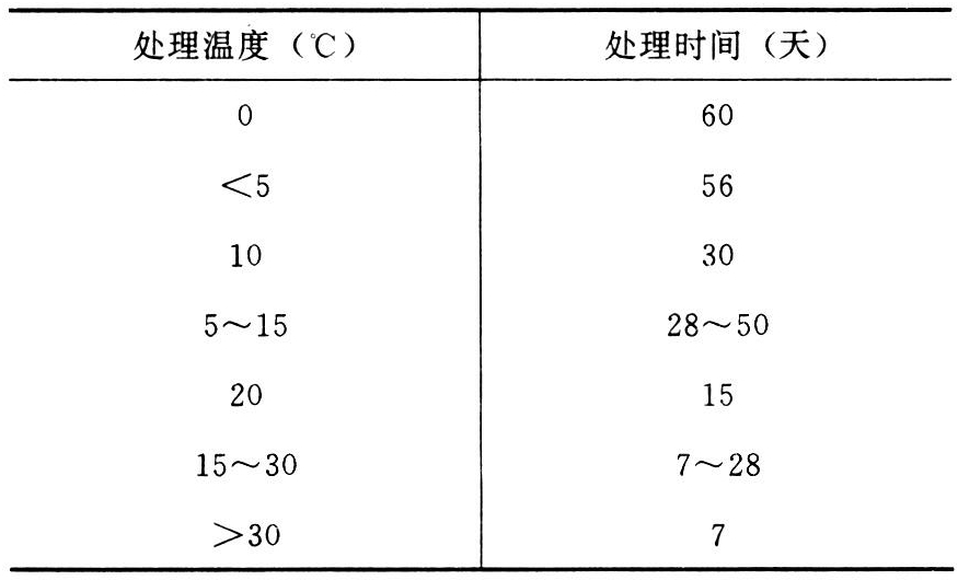 影响秸秆氨化处理效果的因素:①加氨量。一般认为在2.5%~3.5%干物质范围内较为经济合理。②温度。处理温度越低,氨化所需要的时间也越长(表)。③含水量。使用尿素溶液时,理想的水分含量为15%~20%。秸秆过干时,使用氨气处理无任何效果。