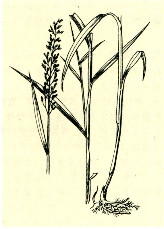 第二颖背具脊,第一花雄性,外稃稍长,第二花两性,外稃裂齿间伸出一芒,长9~12.5毫米,中部膝曲,内稃稍短(图)。分布地区生于山地阳坡砾石质草原、山地灌草丛、草甸草原中,可成为山地草原的优势种,常形成片状单优势种群落。分布于中国东北、华北、华东及西北,前苏联、蒙古、朝鲜、日本也有分布。 大油芒 利用特点东北地区4月初萌发,7月抽穗开花,8月中结实。营养期干物质中含粗蛋白质8.36%,粗脂肪2.