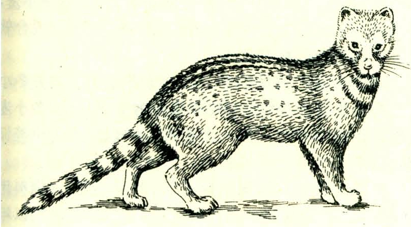 食肉目(Carnivora)、灵猫科(Viverridae)、小灵猫属(Viverricula)。动物学名:V.indica(Desmarast,1817),别名笔猫、斑灵猫、七节狸、香狸、乌脚狸、麝香猫等。染色体数2n=36。是珍贵的产香兽类之一,中国国家二级保护野生动物。中国从1963年起人工驯养