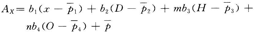 式中 A为种畜某性状的估计育种值;bAp为该性状育种值对表型的回归系数,即遗传力加权系数;户为种畜该性状的表型值;为该性状的群体平均数。由于p和