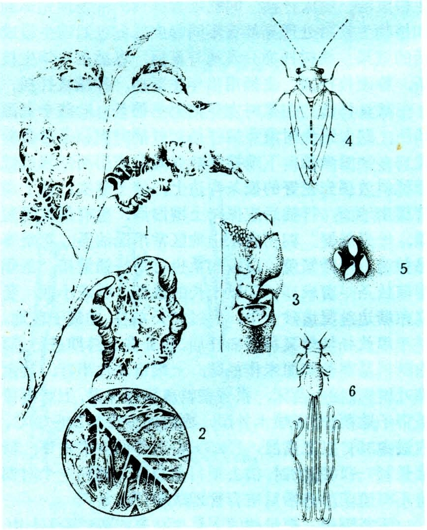 14毫米,初产时白色。若虫体扁平,初孵时灰白色,后变为淡黄色,长2.24毫米,最长时可达25毫米。触角初3节,4龄后增至10节。腹末具白色蜡毛3束,3龄后为4束(图)。 桑木虱 生活习性一年发生1代,以成虫在寄主树皮裂隙或蛀孔中越冬,桑芽在早春萌发时越冬桑木虱即飞至嫩芽进行交尾,产卵于脱苞芽或未展开幼叶表面,尤以上部1~3芽上产卵为多。