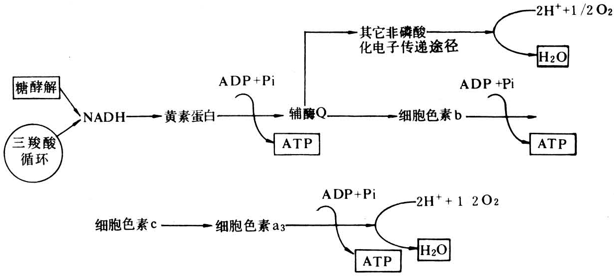 在抗病反应的全过程和感病反应的后期阶段,病植物电子传递的其它氧化酶系统被激活,细胞色素系统受抑制,电子传递从辅酶Q发生短路而传递给其它电子受体,这一过程中不发生磷酸化作用,组织中ADP/ATP值升高,主要用于氧化磷酸戊糖途径产生的NADPH。