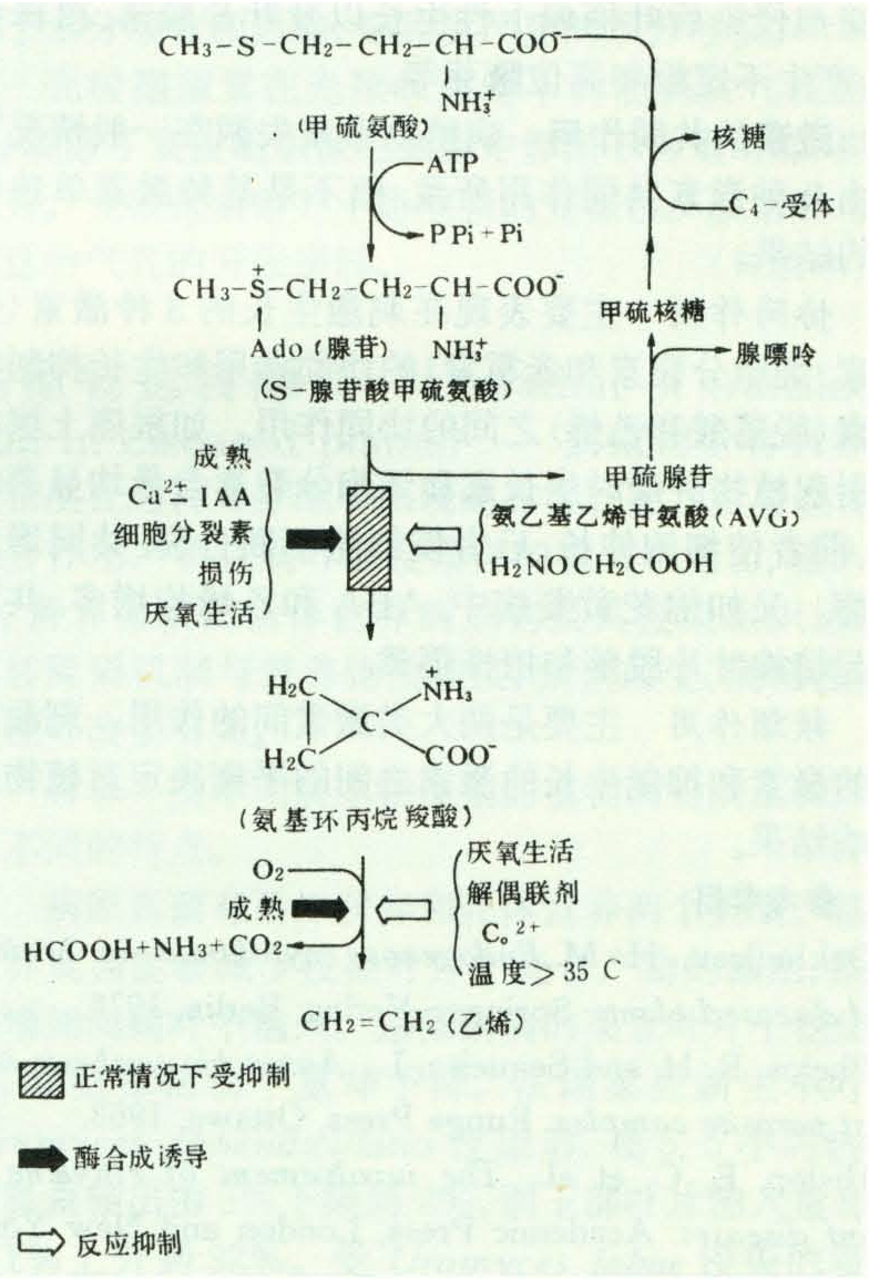 图4 乙烯生物合成及其调节(仿Yang,1980)