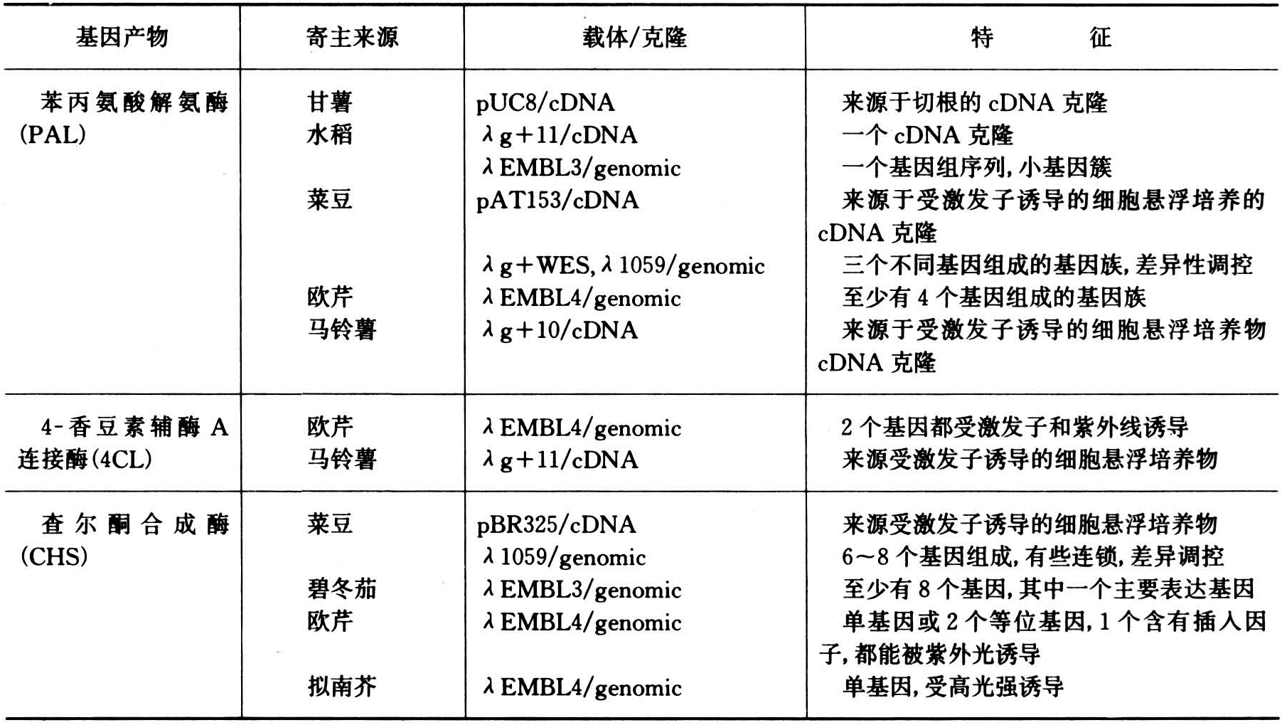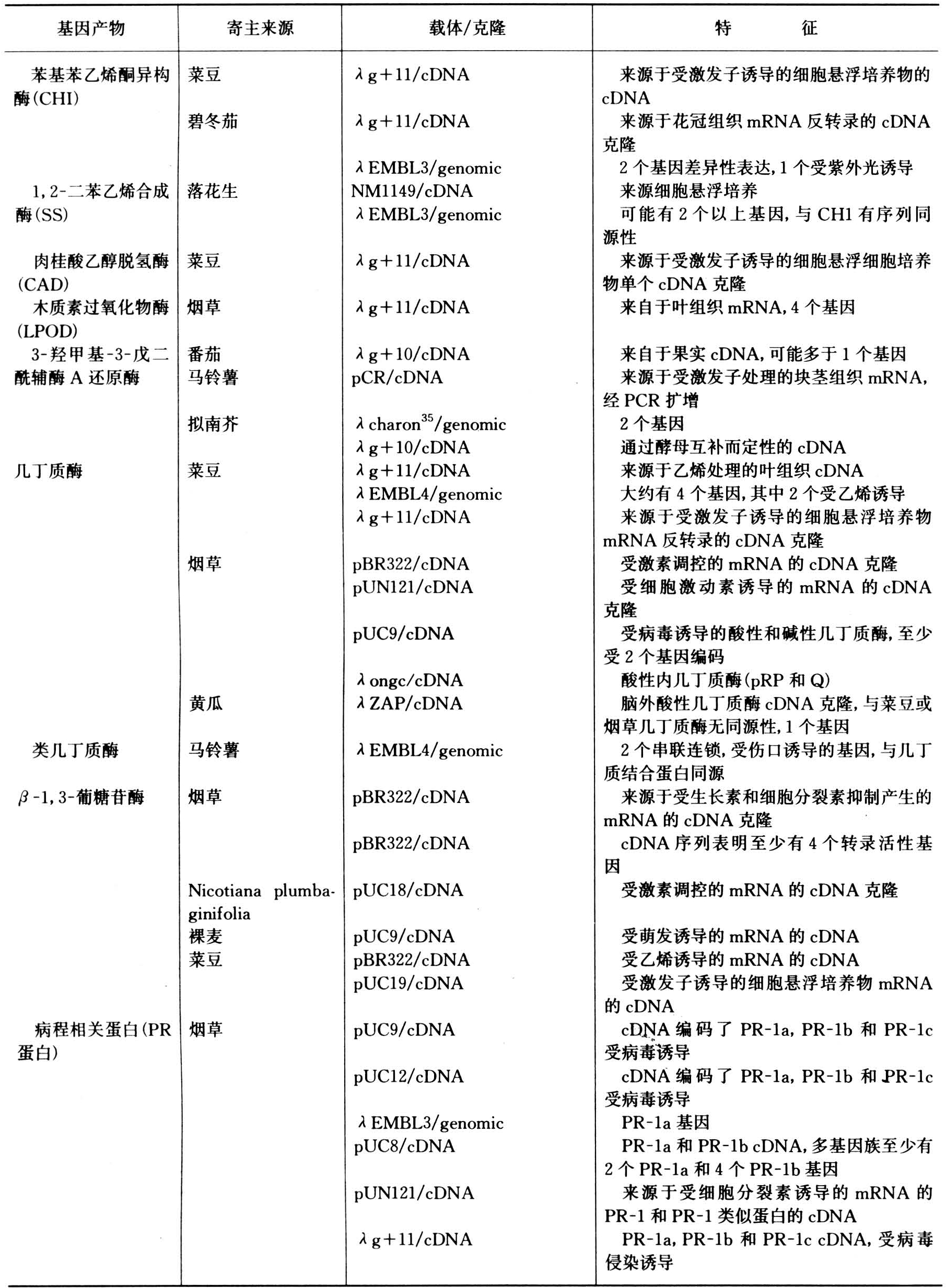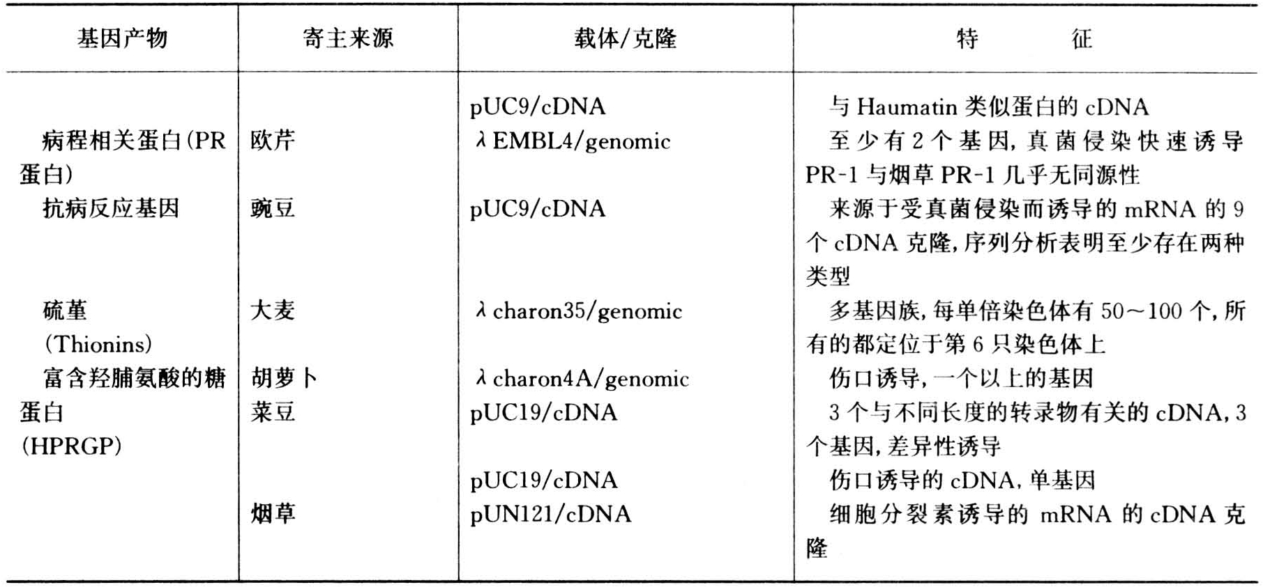 根据产物和功能分为次生物质合成基因、水解酶和病程相关蛋白基因以及与细胞壁修饰有关的基因(见表)。